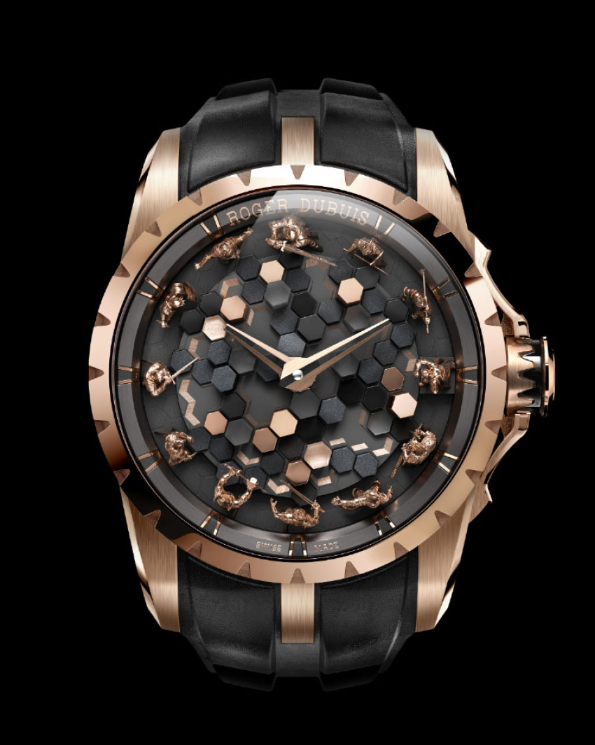 تكتمل الساعة بحزام مصنوع من جلد العجل الأسود، مع مشبك قابل للطي من الذهب الوردي ونظام فتح سريع عصري، مما يضيف لمسة من الراحة والرفاهية. ومن المثير للاهتمام أن روجيه دوبوي أنتجت فقط 28 قطعة من هذه الساعة، مما يجعلها قطعة نادرة وذات طابع حصري.