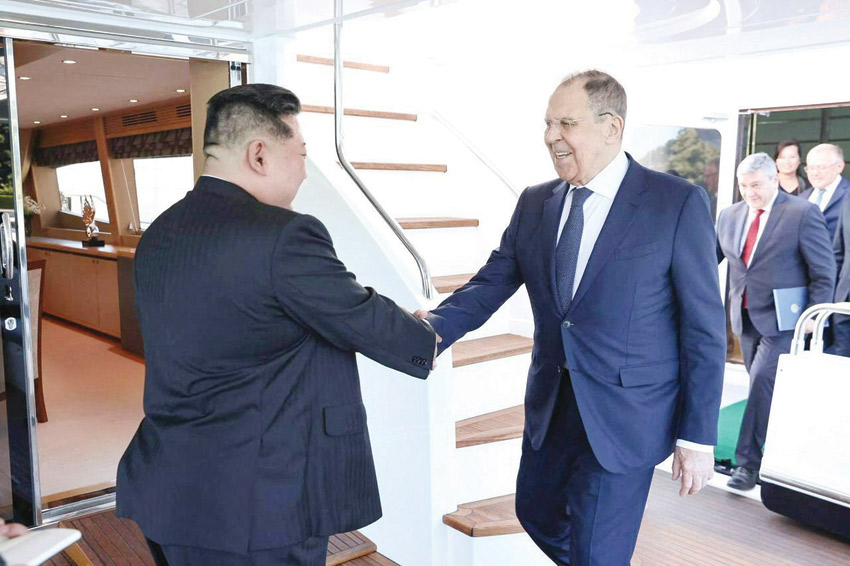 والتقى كيم مع لافروف في مدينة وونسان الساحلية شرق البلاد حيث عقد وزيرا خارجية البلدين حوارهما الاستراتيجي الثاني وتعهدا بتعزيز التعاون في إطار معاهدة شراكة تم توقيعها العام الماضي وتتضمن اتفاق دفاع مشترك. وقالت وكالة الأنباء المركزية الكورية إن كيم أبلغ لافروف بأن الخطوات التي اتخذها الحليفان للتعامل مع التطورات الجيوسياسية العالمية ستسهم بشكل كبير في حفظ السلام والأمن في أنحاء العالم.