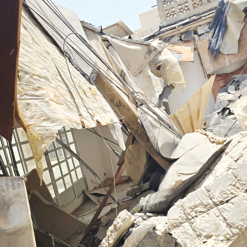وقال محمد الحمادي شقيق المواطنتين: إن شقيقتيه كانتا خارج المنزل يوم أمس وعندما ذهبت إحداهما الى المنزل وفتحت الباب فلم يفتح واضطرت إلى دخول المنزل من باب المجلس لتلقى المفاجأة أن السقف منهار تماما.