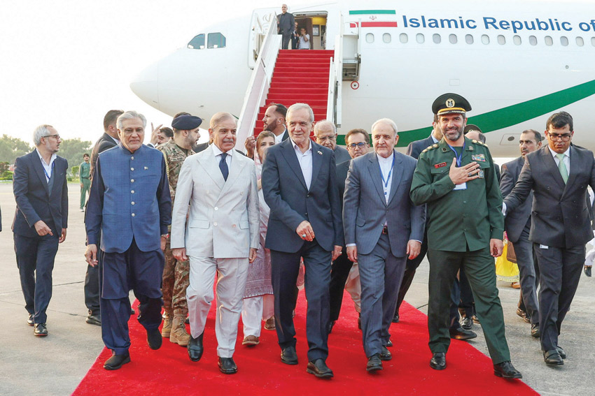 إسلام آباد – (د ب أ): وصل الرئيس الإيراني مسعود بزشكيان أمس السبت إلى إيران في زيارة رسمية تستغرق يومين، حيث تسعى الجارتان إلى تعزيز علاقاتهما الثنائية، وسط تصاعد التوترات في المنطقة وخارجها. ووصل بزشكيان إلى مدينة لاهور شرق البلاد، وبثت وسائل إعلام محلية صورا لهبوط طائرته. ورحب رئيس الوزراء السابق نواز شريف ورئيس الوزراء الإقليمي بالرئيس الإيراني.