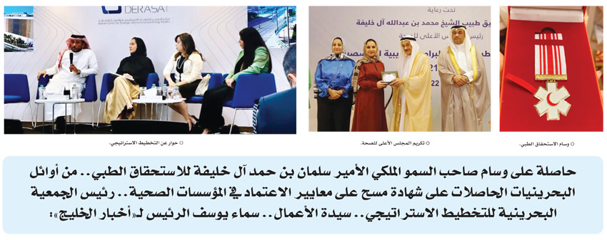 لقد كان لي دور مهم أيضا على الصعيد الوطني في إحياء جمعية المرصد لحقوق الانسان التي ترأستها مدة أربع سنوات، هذا فضلا عن اعتزازي برئاسة اللجنة الخليجية للجودة التابعة للأمانة العامة لمجلس التعاون والتي قمنا من خلالها بإعداد بحث عن الجودة وسلامة المرضي، وكانت البحرين أول دولة خليجية تجري هذا النوع من البحوث، وكان لي شرف رئاسة الفريق القائم بذلك.