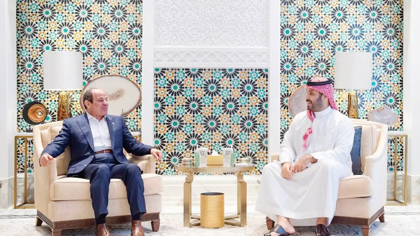 بحث ولي العهد السعودي رئيس مجلس الوزراء الأمير محمد بن سلمان بن عبدالعزيز، مع الرئيس المصري عبدالفتاح السيسي تطورات الأوضاع في فلسطين، في قصر نيوم، شمال غرب المملكة يوم أمس.