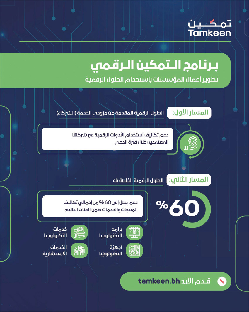 ويأتي هذا البرنامج ضمن جهود «تمكين» في تعزيز نمو وتطور المؤسسات الصغيرة والمتوسطة، تماشياً مع أولويات «تمكين» الاستراتيجية لعام 2025 التي تتمثل في تعزيز مكانة وتنافسية المواطن البحريني في القطاع الخاص، وتزويد البحرينيين بالمهارات المناسبة للتطور الوظيفي في القطاع الخاص، إلى جانب منح الأولوية لنمو ورقمنة واستدامة المؤسسات.