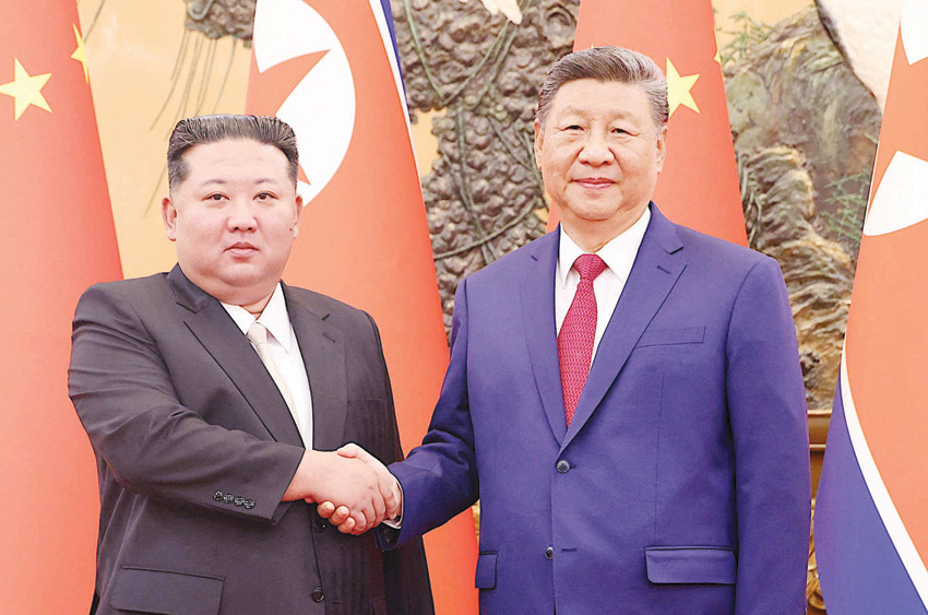بكين - (أ ف ب): عقد الرئيس الصيني شي جينبينغ مباحثات مع الزعيم الكوري الشمالي كيم جونغ أون، بحسب ما أفاد الاعلام الرسمي في بكين أمس الخميس. وأورد الإعلام الرسمي أن المباحثات جرت في «قاعة الشعب الكبرى» في العاصمة، من دون أن يقدم تفاصيل بشأنها. وكانت وزارة الخارجية الصينية أكدت في وقت سابق الخميس أن شي جينبينغ سيجري محادثات مع كيم جونغ أون. وقال المتحدث باسم الوزارة غو جياكون: إن الزعيمين «سيجريان مباحثات وسيتبادلان بعمق وجهات النظر بشأن العلاقات» الثنائية، إضافة الى «القضايا ذات الاهتمام المشترك».