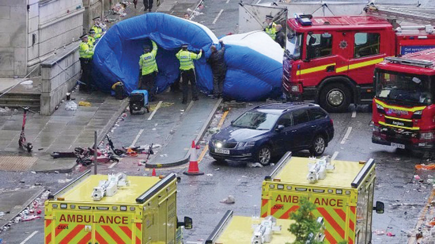 وكان المشجعون يحتفلون بلقب ليفربول العشرين عندما قاد دويل سيارته في شارع مزدحم بالمشجعين. وذكرت الشرطة أنها تعتقد أن دويل تجاوز حاجزا أمنيا باتباعه سيارة إسعاف كانت تحاول الوصول إلى ضحية محتمل إصابته بأزمة قلبية.