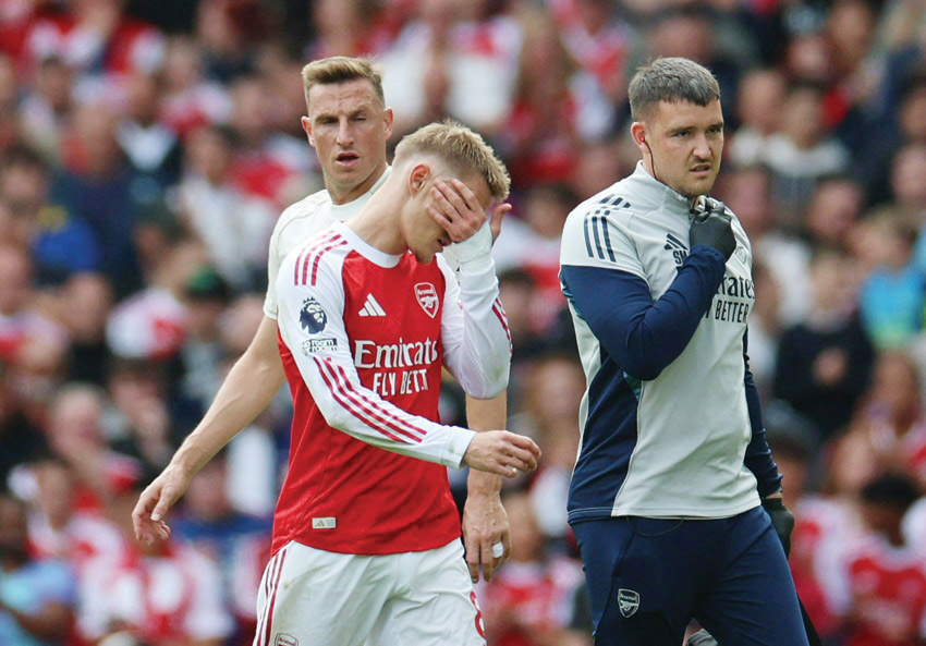 وسئل أرتيتا عقب الفوز على نوتنجهام فورست 3-صفر عن حالة قائد أرسنال، ليرد قائلا: «أعتقد أنها نفس الإصابة التي تعرض لها في المباراة السابقة، وشكا من آلام، ولم يتمكن من مواصلة اللعب».