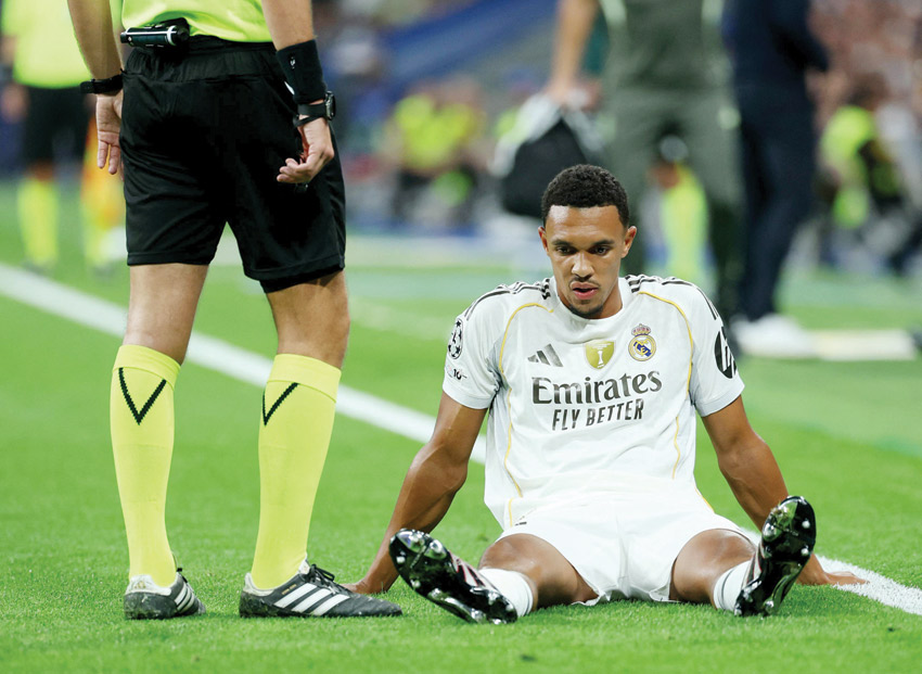 مدريد - (أ ف ب): يعاني ترنت ألكسندر-أرنولد الظهير الأيمن الإنجليزي لريال مدريد من إصابة في أوتار الفخذ تعرّض لها خلال فوز فريقه على مرسيليا الفرنسي ضمن دوري أبطال أوروبا لكرة القدم، وفقا لما أعلنه نادي العاصمة الإسبانية أمس الأربعاء.