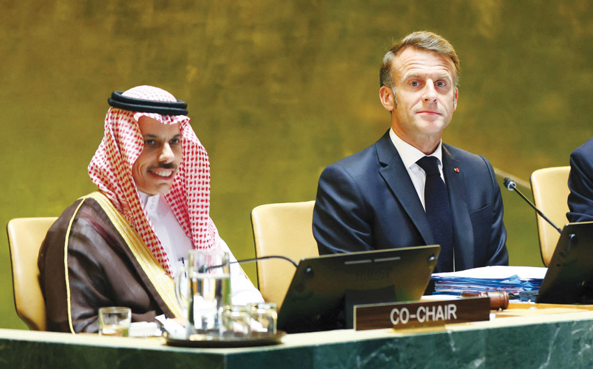 انطلقت فعاليات المؤتمر الدولي بشأن التسوية السلمية لقضية فلسطين وتنفيذ حل الدولتين، أمس، برئاسة سعودية - فرنسية، وبمشاركة العشرات من زعماء العالم، في مقر الجمعية العامة للأمم المتحدة بنيويورك، ووصفت الرياض المؤتمر بأنه فرصة تاريخية نحو تحقيق السلام.