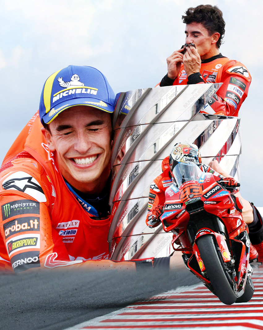وبعدما أنهى الموسم الماضي ثالثا مع الصانع الإيطالي دوكاتي وفريقه الرديف غريزيني الذي انتقل إليه بعد 11 موسما مع هوندا، استعاد مارك تألقه وبات الدراج الأكثر جمعا للنقاط خلال موسم واحد في تاريخ موتو جي بي حتى مع بقاء ست جولات على نهاية الموسم.