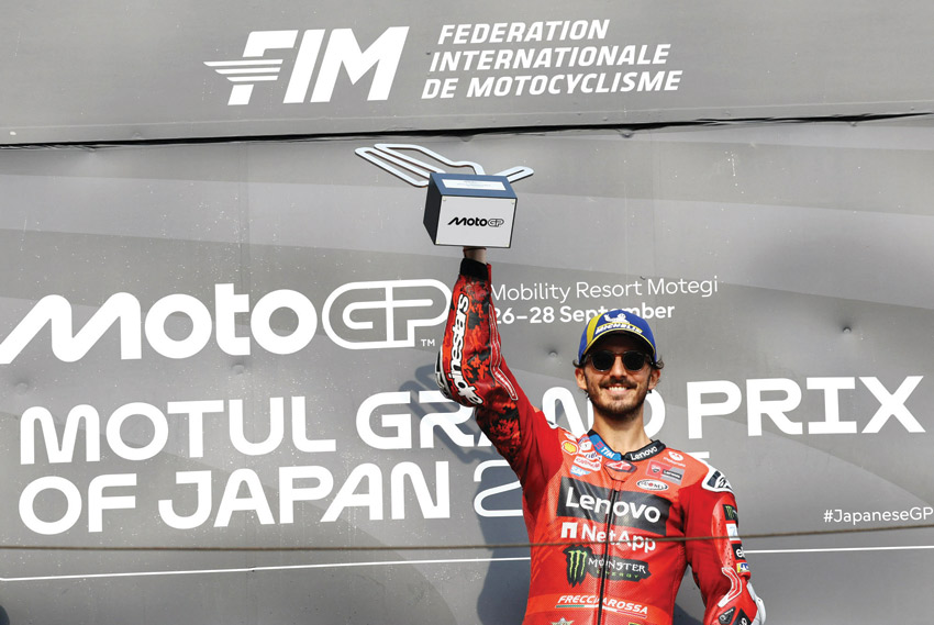 (أ ف ب): أحرز لقب جائزة اليابان الكبرى الإيطالي فرانتشيسكو بانيايا، زميل مارك ماركيس في فريق دوكاتي، فيما حل شقيقه أليكس (دوكاتي غريزيني) في المركز السادس.