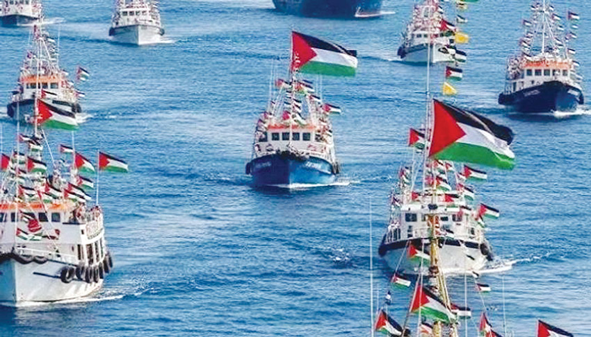 وقد وجّه سلاح البحرية الإسرائيلي أمس الأربعاء تعليمات لأسطول الصمود العالمي الذي يقل ناشطين ومساعدات الى قطاع غزة، بتغيير مساره لاقترابه من «منطقة قتال نشطة»، فيما أكد نشطاؤه أن سفنا حربية إسرائيلية تحاصرهم. ومساء أمس أعلن وزير الخارجية الفرنسي جان-نويل بارو أن «السلطات الإسرائيلية بصدد اعتراض» سفن الأسطول.