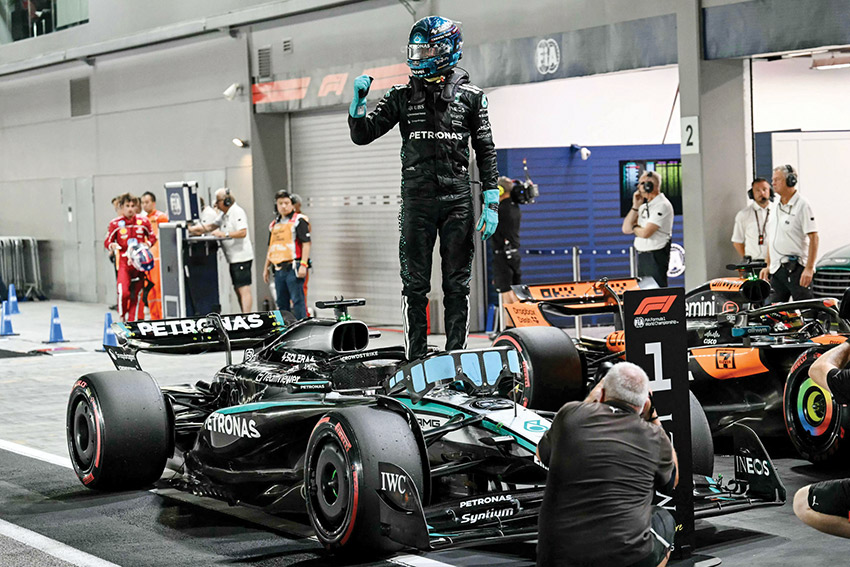 سنغافورة - (أ ف ب): ينطلق سائق مرسيدس البريطاني جورج راسل اليوم الأحد من المركز الأول في سباق جائزة سنغافورة الكبرى، الجولة الثامنة عشرة من بطولة العالم للفورمولا واحد، بعدما تقدم في التجارب الرسمية السبت على سائق ريد بول الهولندي ماكس فيرستابن، في وقت عجزت فيه سيارتا ماكلارين عن مجاراة المنافسين على حلبة مارينا باي.