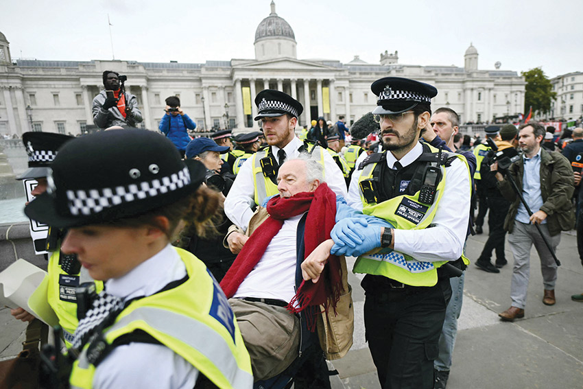 لندن - (أ ف ب): قررت الحكومة البريطانية منح الشرطة سلطات أوسع لفرض قيود على الاحتجاجات، في وقت أشارت وزيرة الداخلية إلى أن التظاهرات الكبيرة والمتكررة المؤيدة للفلسطينيين أثارت «خوفا كبيرا» في أوساط الجالية اليهودية.