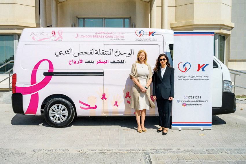 احتفالاً بشهر التوعية بسرطان الثدي، قدّمت مؤسسة يوسف وعائشة المؤيد للأعمال الخيرية سيارة مخصصة لمركز لندن لجراحة الثدي. حُوّلت السيارة إلى عيادة فحص متنقلة مجهزة بالكامل، ستقدم خدمات فحص سرطان الثدي مجانًا للنساء في جميع أنحاء مملكة البحرين.