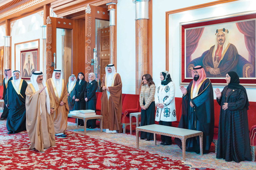 وخلال الاستقبال تشرفت الدكتورة فوزية يوسف عبدالله الجيب مستشار رئيس مجلس الشورى بتقديم كتاب من إعدادها إلى جلالة الملك المعظم بعنوان «قصة نجاح مملكة البحرين IPU 146»، حيث يوثق الكتاب في فصوله الأربعة النجاح والتميز الذي حصدته مملكة البحرين في استضافة اجتماعات الجمعية العامة الـ146 للاتحاد البرلماني الدولي والاجتماعات المصاحبة في عام 2023، ويعكس الكتاب الصورة المشرقة لمملكة البحرين وما تنعم به من نهضة شاملة، وثقة دولية رفيعة، في ظل الرؤية الملكية السامية لجلالة الملك المعظّم، ومتابعة الحكومة برئاسة صاحب السمو الملكي ولي العهد رئيس مجلس الوزراء.