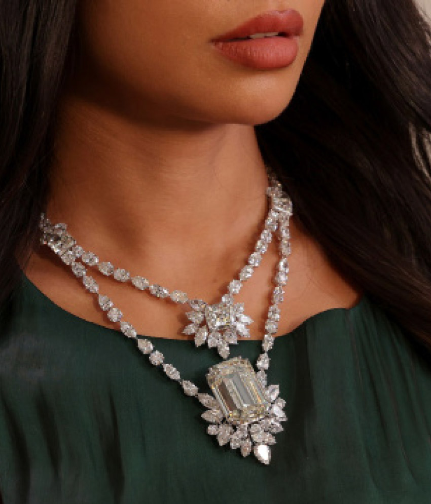 وعرض دار Moussaief، إحدى أرقى دور المجوهرات الفاخرة وأكثرها تميّزًا في العالم، مجموعة من روائعها. تشمل أبرز القطع عقدًا من الماس زنة 62.61 قيراطًا مع قلادة من الماس زنة 30.91 قيراطًا وأقراط متطابقة من الماس زنة 21.98 قيراطًا، بالإضافة إلى عقد فاخر آخر من الماس الأصفر المذهل، مرصّع بالماس الأصفر زنة 72.89 قيراطًا، والماس الأبيض 50.95 قيراطًا، وقلادة من الماس الأصفر زنة 50.10 قيراطًا مع أقراط متطابقة.