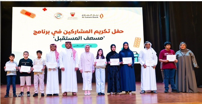 جاء ذلك خلال الحفل الختامي لبرنامج "مسعف المستقبل"، الذي نُظّم ضمن برامج مدينة شباب 2030، ومركزي المحرق ومدينة حمد النموذجيين، والمركز العلمي، بالشراكة مع فريق أكاديمية المسعفين التطوعية، وبدعمٍ من بنك السلام، بهدف غرس الوعي الصحي والإسعافي لدى النشء والشباب، وتنمية قدراتهم في التعامل مع الحالات الطارئة بثقة ومسؤولية.