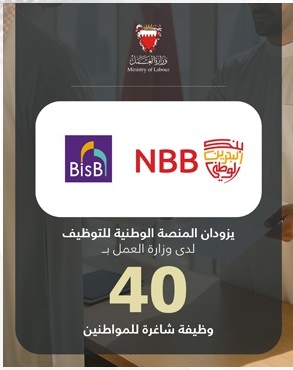 في إطار مواصلة الجهود الوطنية الرامية إلى توفير فرص عمل نوعية للمواطنين وتمكينهم من الإسهام الفاعل في مسيرة التنمية، أعلن السيد يوسف بن عبدالحسين خلف وزير الشؤون القانونية وزير العمل بالوكالة أن بنك البحرين الوطني وبنك البحرين الاسلامي قاما بتزويد المنصة الوطنية للتوظيف التابعة لوزارة العمل بـ 40 وظيفة شاغرة مخصصة للمواطنين.