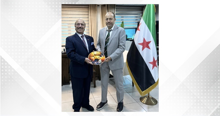 وخلال اللقاء، قدّم السفير وحيد مبارك سيّار التهنئة لمعالي الوزير محمد سامح حامض بمناسبة تسلّمه حقيبة وزارة الرياضة والشباب في الحكومة السورية الانتقالية.
