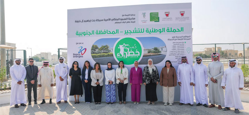 وتماشيًا مع توجيهات سمو ولي العهد رئيس مجلس الوزراء حفظه الله، نظمت بابكو إنرجيز وشركاتها التابعة برنامجاً للاحتفاء بأسبوع الشجرة بالشراكة والتعاون مع المبادرة الوطنية لتنمية القطاع الزراعي، حيث شاركت المهندسة باسمة المحروس الرئيس التنفيذي لشركة تزويد في فعالية تدشين المرحلة الخامسة من مبادرة «دمت خضراء» والتي تتم في المحافظة الجنوبية وشملت تشجير مركز تمكين شباب الزلاق بحضور سعادة السيدة روان بنت نجيب توفيقي، وزيرة شؤون الشباب، وسعادة الشيخة مرام بنت عيسى آل خليفة، الأمين العام للمبادرة الوطنية لتنمية القطاع الزراعي.
