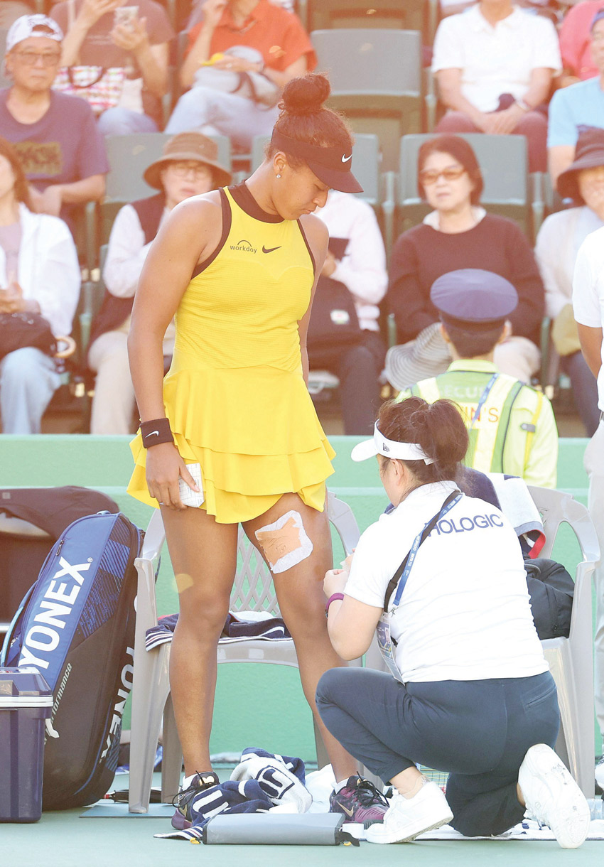 تقدمت أوساكا المصنفة أولى عالميا سابقا 5-0 في المجموعة الثالثة الحاسمة عندما تعرضت لإصابة في ساقها وطلبت تدخل الطبيب المعالج.