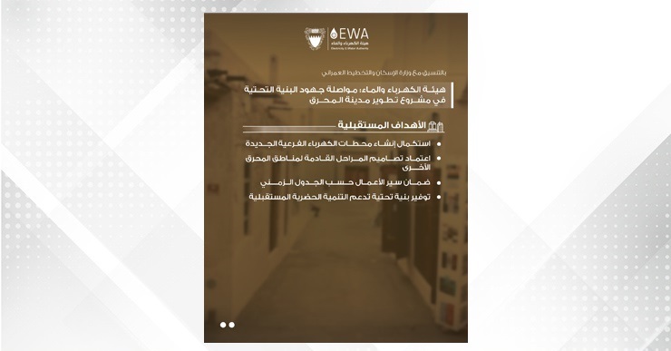 إنفاذًا للأمر الملكي السامي لحضرة صاحب الجلالة الملك حمد بن عيسى آل خليفة ملك البلاد المعظم، بالمحافظة على الهوية التاريخية والثقافية لمباني ومدن البحرين، وإحياء قصر عيسى الكبير وتطوير مدينة المحرق بما يحفظ هويتها التاريخية والثقافية، وتنفيذًا لتوجيهات صاحب السمو الملكي الأمير سلمان بن حمد آل خليفة ولي العهد رئيس مجلس الوزراء بتفعيل الخطة التنفيذية الخاصة بالمحافظة على الهوية التاريخية والثقافية لمباني ومدن البحرين وإطلاق خطة تطوير مدينة المحرق، أكدت هيئة الكهرباء والماء أن فرقها المتخصصة تعمل ضمن إطار تكاملي مع وزارة الإسكان والتخطيط العمراني والجهات الحكومية الأخرى، لتلبية احتياجات مشروع تطوير مدينة المحرق وتوفير الحلول الفنية اللازمة، بما يضمن إنجاز المراحل التنفيذية وفق الجدول الزمني والمعايير المعتمدة.