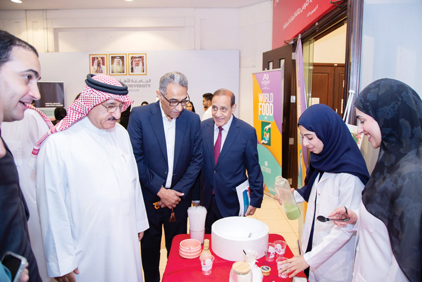 من ناحيته، تناول البروفيسور مختار الهاشمي نائب الرئيس للشؤون الأكاديمية الأسس العلمية للعلاقة التبادلية بين النظام الغذائي والأداء الذهني والنفسي، وقدم نماذج تطبيقية أوضحت كيف أن العناية بالتغذية والنشاط البدني تنعكس إيجاباً على التحصيل العلمي والحد من الضغوط.