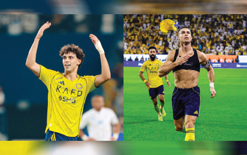 الرياض - (أ ف ب): حصّن البرتغاليان كريستيانو رونالدو وجواو فيليكس صدارة النصر للدوري السعودي لكرة القدم، بعد تألقهما في قيادته لفوز كبير على الفتح (5-1) في الجولة الخامسة، حاصداً العلامة الكاملة ومتقدما بفارق نقطتين على ملاحقه المباشر القادسية الذي حسم قمته مع نيوم في تبوك (3-1).