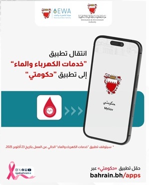 ودعت كلٌّ من هيئة المعلومات والحكومة الإلكترونية وهيئة الكهرباء والماء، في إطار ذلك، جميع المستخدمين من المواطنين والمقيمين إلى مواصلة الاستفادة من باقة خدمات الكهرباء والماء والخدمات الحكومية الأخرى، من خلال المبادرة بتحميل تطبيق "حكومتي" (MyGov) المتوفر على متجر تطبيقات الحكومة الإلكترونية: bahrain.bh/apps، أو بالوصول إلى هذه الخدمات من خلال زيارة البوابة الوطنية bahrain.bh أو موقع هيئة الكهرباء والماء الإلكتروني www.ewa.bh.