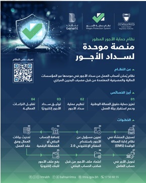 يُشار إلى أن نظام حماية الأجور يمكّن أصحاب العمل من سداد أجور جميع العمال في القطاع الخاص عبر المؤسسات المالية والمصرفية المعتمدة من مصرف البحرين المركزي. وقد طورت الهيئة النظام إلكترونيًا لضمان الشفافية والالتزام وتعزيز الامتثال للأنظمة العمالية. كما استكملت الهيئة الإجراءات التجريبية لمواءمة أنظمة عددٍ من المؤسسات المالية والمصرفية مع نظام حماية الأجور للتحقق من كفاءة الخدمة وجودتها، فيما يجري حاليًا استكمال مواءمة بقية المؤسسات تمهيدًا لتشغيل النظام بصورته الكاملة خلال الربع الأول من 2026.