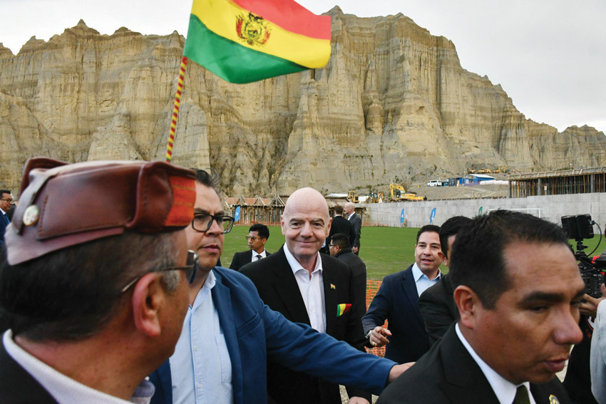 لاباز - (أ ف ب): وعد رئيس الاتحاد الدولي لكرة القدم (فيفا)، السويسري-الإيطالي جاني إنفانتينو، في لاباز، بأن بوليفيا، المعروفة بملاعبها الواقعة على علو مرتفع فوق سطح البحر، ستستضيف يوما ما «كأس عالم»، من دون أن يحدد موعدا أو فئة البطولة المقصودة.
