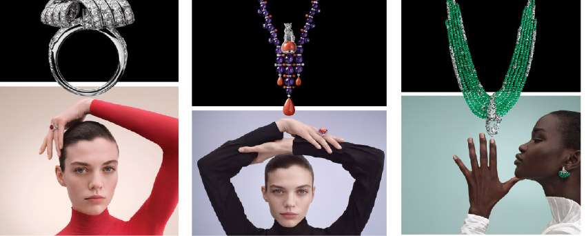 ويتجلى هذا المنهج في قطع متعددة داخل المجموعة مثل عقد PANTHÈRE ORBITALE الذي يعيد تقديم ثنائية المرجان والجمشت التي ظهرت في أرشيف الدار، ما يعكس صلة الماضي بالحاضر بلغة تصميمية متجددة. أما عقد TSAGAAN فيحوّل ملامح الفهد الثلجي إلى تكوين هندسي صارم، في حين يترجم عقد TIGRIS خطوط فرو النمر إلى هيكل معماري متقن. وتؤكد هذه المقاربات كيف يمكن لرمزية الحيوانات أن تتحول إلى لغة تجريدية تفتح مسارات جديدة في طريق الإبداع.