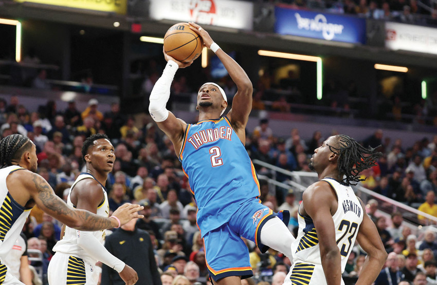 لوس أنجليس - (أ ف ب): تعملق الكندي شاي غيلجوس-ألكسندر بتسجيله 55 نقطة، هي الأعلى في رصيده الشخصي، في مباراة احتاج خلالها فريقه أوكلاهوما سيتي ثاندر حامل اللقب إلى شوطين إضافيين للفوز على مضيفه إنديانا بايسرز 141-135، وذلك بعد يومين من سيناريو مشابه أمام هيوستن روكتس في مستهل مبارياته في دوري كرة السلة الأمريكي للمحترفين (أن بي أيه).