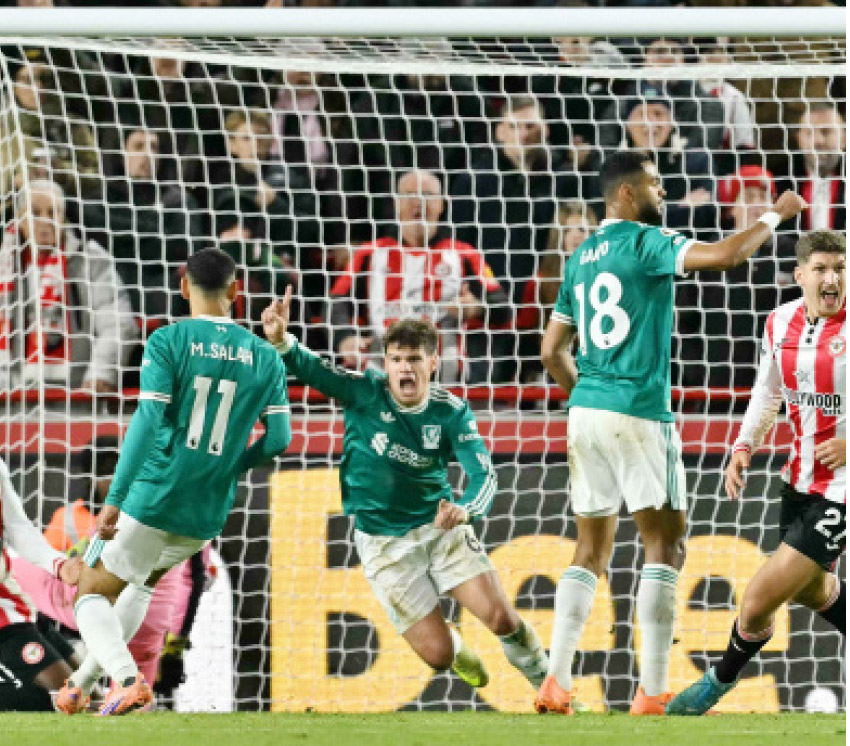 وتقدم برنتفورد بهدفين سجلهما البوركينابي دانغو واتارا بكرة «على الطاير» (5)، والالماني كيفن شاده (45)، ورد ليفربول بواسطة ظهيره الايسر المجري ميلوش كيركيز (45+5)، ثم تقدم برنتفورد مجددا من ركلة جزاء انبرى لها البرازيلي ايغور تياغو (60)، وقلص المصري محمد صلاح النتيجة (89).