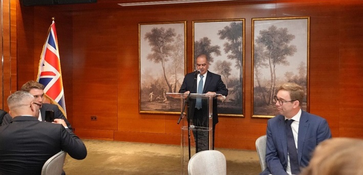 وقد ألقى الدكتور زبير أحمد، وزير الدولة للصحة والرعاية الاجتماعية، كلمةً عبّر فيها عن اعتزازه بعلاقات الصداقة التاريخية بين مملكة البحرين والمملكة المتحدة، وتطلع الحكومة البريطانية إلى الدفع بالعلاقات الثنائية إلى آفاقٍ أرحب في كافة مجالات التعاون السياسيّة والاقتصادية والاجتماعية والثقافية، مشيرًا إلى حرص بلاده على إبرام اتفاقية التجارة الحرة بين دول مجلس التعاون والمملكة المتحدة بما يعود بالنفع على البلدان والشعوب الصديقة.