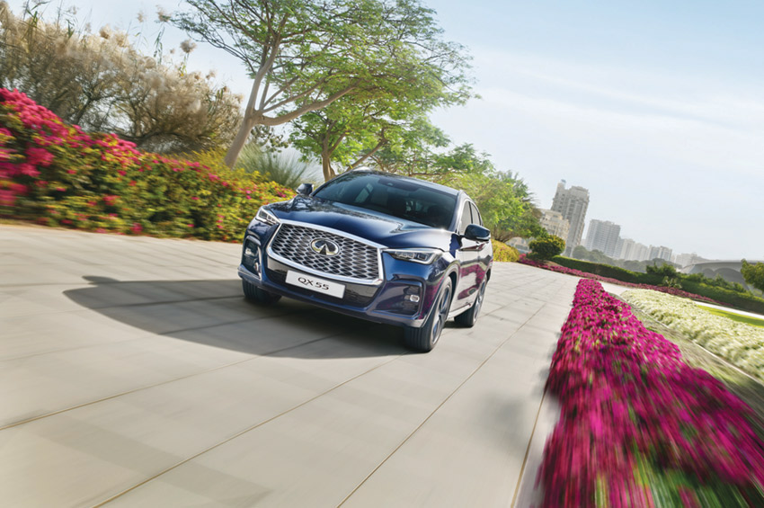 وتأتي فئة QX55 SENSORY في القمة، حيث تضيف لمسات فاخرة مثل لمسات خشبية طبيعية مفتوحة المسام من خشب القيقب الأسود، وشاشة عرض المعلومات على الزجاج الأمامي، وباب خلفي يُفتح بالحركة، ومقاعد بجلد شبه أنيلين فخم مع تدفئة في المقاعد الخلفية. كما توفّر تجربة صوتية غامرة مع نظام صوت Bose® Performance Series الفاخر الذي يضم 16 مكبّر صوت مع شبكات معدنية للمكبرات. وتُعدّ أنظمة التحكم في المناخ في هذه الفئة من الأعلى مستوى، بفضل نظام تكييف هواء أوتوماتيكي ثلاثي المناطق، مع خاصية غلق التهوية الأمامية والخلفية، وإعادة التدوير الأوتوماتيكي مع مؤيّن للهواء، ومرشّحات فائقة الدقة مضادة للحساسية.