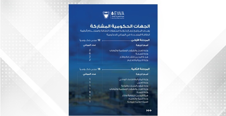 ويأتي تدشين هذه المرحلة في إطار مواصلة هيئة الكهرباء والماء تنفيذ خطتها الوطنية لرفع كفاءة استهلاك الطاقة في المباني الحكومية، استكمالًا للمرحلة الأولى التي نُفذت في 12 مبنى حكوميًا، لتشمل المرحلة الثانية تحسين كفاءة استهلاك الطاقة في 15 مبنى حكوميًا.