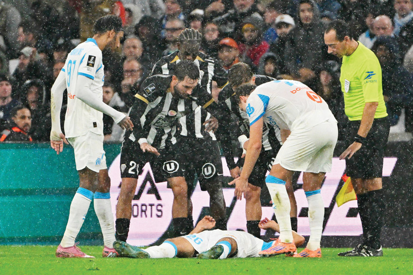 مرسيليا - (أ ف ب): شهدت مباراة مرسيليا وأنجيه ضمن الدوري الفرنسي لكرة القدم، لحظات قلق وتوتر، إثر سقوط اللاعب المغربي الشاب بلال نذير أرضا بشكل مفاجئ وفقدانه للوعي. وتوقفت المباراة التي انتهت بالتعادل 2-2 إثرها، حيث هرع الجهاز الطبي للفريق لنقل اللاعب إلى المستشفى لتلقي الفحوص اللازمة. ولم يخف مدرب مرسيليا، الإيطالي روبرتو دي تزيربي تأثره عقب نهاية اللقاء خلال المؤتمر الصحفي «لقد استعاد وعيه، وتم نقله إلى المستشفى لإجراء اختبارات وفحوص طبية. نحن جميعا قلقون ونتمنى ألا يكون الأمر خطيرا». ولاحقا، أفادت قناة «ليغ 1+» أن اللاعب البالغ 21 عاما استعاد وعيه، كاشفة أنه شعر بصداع مفاجئ قبل سقوطه.