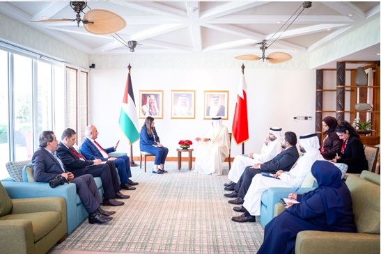وتم خلال اللقاء بحث أوجه العلاقات الأخوية التاريخية الوطيدة التي تربط بين مملكة البحرين ودولة فلسطين، وسبل تطوير التعاون والتنسيق المشترك في مختلف المجالات بما يخدم المصالح والأهداف المشتركة للبلدين والشعبين الشقيقين.