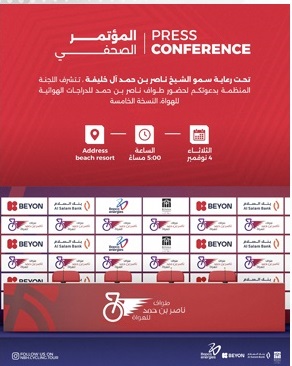 تستعد اللجنة المنظمة لطواف ناصر بن حمد للهواة للدراجات الهوائية لعقد المؤتمر الصحفي الخاص بالنسخة الخامسة طواف ناصر بن حمد للهواة للدراجات الهوائية، الذي سيقام خلال الفترة من 5 حتى 8 نوفمبر الحالي، بتنظيم من الاتحاد البحريني للدراجات الهوائية وبالتعاون مع شركة فعاليات.