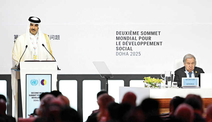 وافتتح أمير قطر مؤتمر القمة العالمي الثاني للتنمية الاجتماعية والذي تستضيفه الدوحة من الرابع الى السادس من الشهر الجاري بحضور الأمين العام للأمم المتحدة انطونيو جوتيريش.
