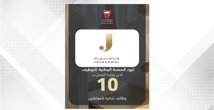 في إطار تنفيذ توجيهات صاحب السمو الملكي الأمير سلمان بن حمد آل خليفة ولي العهد رئيس مجلس الوزراء حفظه الله، بعرض 3 فرص وظيفية لكل باحث عن عمل مسجل لدى وزارة العمل، شركة جاشنمال وأولاده تزود المنصة الوطنية للتوظيف بـ 10 وظائف شاغرة للمواطنين.