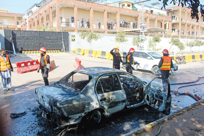 وقال محام آخر هو رستم مالك: «عندما أوقفت سيارتي ودخلت المجمع.. سمعت دوي انفجار عند البوابة». وأضاف: «سادت فوضى عارمة، وكان المحامون والناس يركضون داخل المجمع. رأيت جثتين على الأرض عند البوابة وعدة سيارات مشتعلة». وبقيت إسلام أباد إلى حد كبير بمنأى عن أعمال العنف الكبيرة في السنوات القليلة الماضية. ويعود آخر هجوم انتحاري إلى ديسمبر 2022. لكن باكستان تشهد تجددا للهجمات التي ينسبه المسؤولون بشكل رئيسي إلى جماعات مسلحة يعتقد أنها تتخذ من الأراضي الأفغانية ملجأ لها. وجاء الهجوم فيما تخوض قوات الأمن الباكستانية معركة ضد مسلحين تحصنوا في مدرسة في منطقة وانا في إقليم خيبر بختونخوا بشمال غرب البلاد، قرب الحدود الأفغانية.