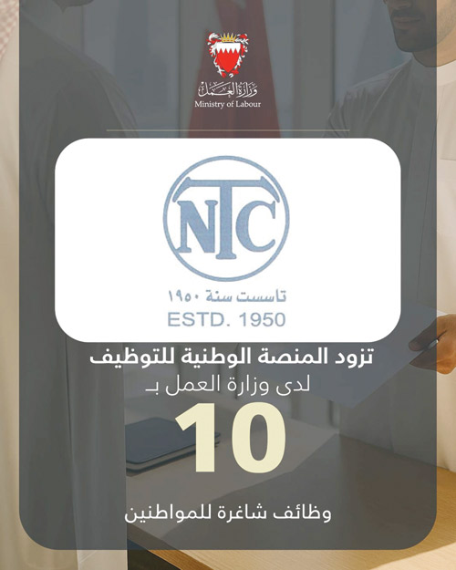 في إطار تنفيذ توجيهات صاحب السمو الملكي الأمير سلمان بن حمد آل خليفة ولي العهد رئيس مجلس الوزراء، بعرض 3 فرص وظيفية لكل باحث عن عمل مسجل لدى وزارة العمل، الشركة الوطنية للنقليات تزود المنصة الوطنية للتوظيف بـ10 وظائف شاغرة للمواطنين.