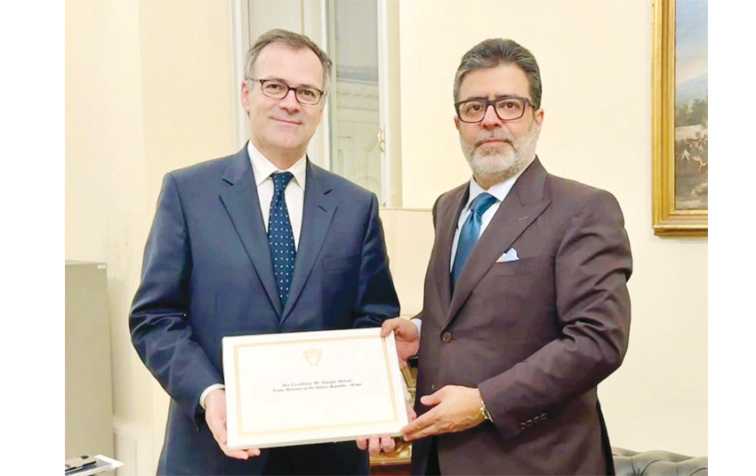 وتسلم الرسالة السفير فابريزيو ساجو المستشار الدبلوماسي لرئاسة الوزراء بالجمهورية الإيطالية، لدى استقباله أمس أسامة عبدالله العبسي سفير مملكة البحرين لدى الجمهورية الإيطالية.
