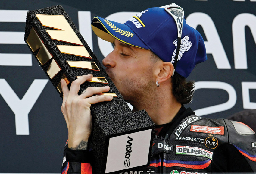 وكان بتزيكي حقق فوزا مهيمنا من الانطلاق حتى النهاية في جائزة البرتغال الكبرى الأسبوع الماضي، وكرر الإيطالي إنجازه في بلنسية، محتفلا بالركوع على ركبة واحدة وكأنه يقدم عرضا للزواج من دراجته النارية المحبوبة.