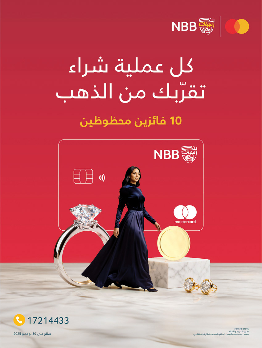 وطوال فترة الحملة، سيتأهل العملاء لدخول السحب مقابل كل 300 دينار بحريني يُنفقونها باستخدام بطاقات ماستركارد الائتمانية في أيٍ من محلات المجوهرات بمملكة البحرين، لدخول السحب على عملات ذهبية حصرية لـ10 فائزين. وعلاوة على ذلك، سيقدم بنك البحرين الوطني خدمة سائق بسيارة فاخرة مع مدة انتظار ثلاث ساعات مجانًا، وذلك حصريًا لمستخدمي بطاقة ماستركارد وورلد إيليت إكسلوسف، وهو ما يأتي لضمان حصولهم على تجربة سلسة ومريحة طوال فترة أسبوع المجوهرات.