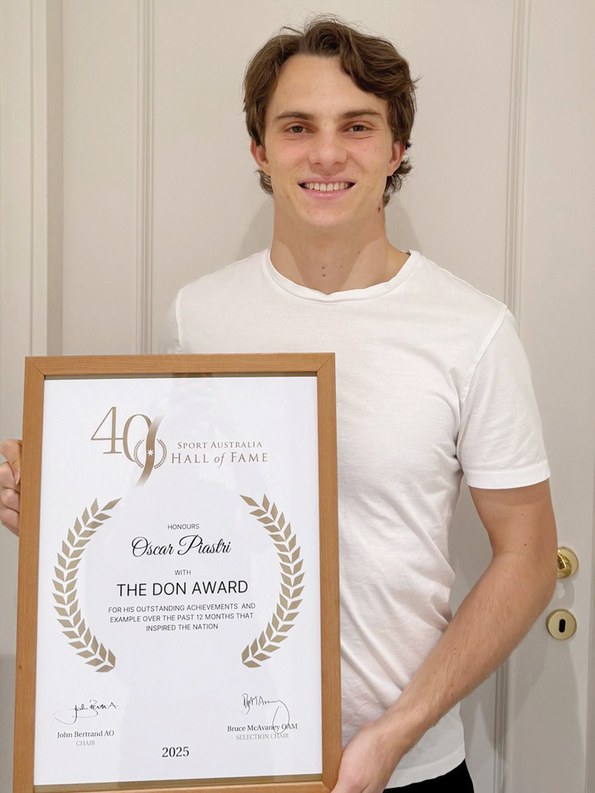 دخل ابن الرابعة والعشرين نادي النخبة هذا الموسم، ويسعى أن يصبح ثالث أسترالي يحرز لقب بطولة العالم بعد جاك برابهام وألن جونز. ويواجه بياستري منافسة شرسة، إذ فقد صدارة الترتيب في جائزة مكسيكو الشهر الماضي، ويتأخر الآن بفارق 24 نقطة عن زميله في فريق ماكلارين، البريطاني لاندو نوريس، مع تبقي ثلاثة سباقات. وكُرّم بياستري مساء الخميس في مسقط رأسه ملبورن خلال حفل جوائز قاعة مشاهير الرياضة الأسترالية، التي تكرّم الرياضي أو الفريق الذي ألهم الأمة أكثر من غيره خلال الأشهر الـ12 الماضية. وتحمل جائزة «دون» اسم أسطورة الكريكيت الأسترالي دونالد برادمان.