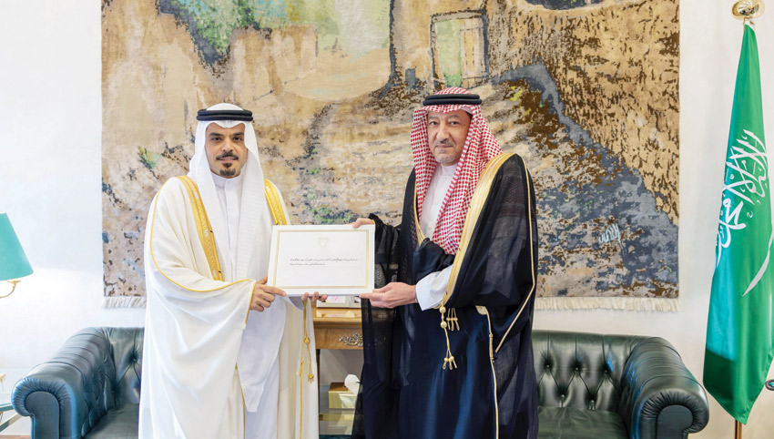 بعث حضرة صاحب الجلالة الملك حمد بن عيسى آل خليفة ملك البلاد المُعظم رسالة خطية إلى أخيه خادم الحرمين الشريفين الملك سلمان بن عبدالعزيز آل سعود ملك المملكة العربية السعودية الشقيقة، تتضمن دعوة عاهل المملكة العربية السعودية إلى المشاركة في القمة السادسة والأربعين للمجلس الأعلى لمجلس التعاون التي تستضيفها مملكة البحرين في ديسمبر المقبل. وتسلم الرسالة المهندس وليد بن عبدالكريم الخريجي نائب وزير الخارجية لدى استقباله في مقر وزارة الخارجية الشيخ علي بن عبدالرحمن بن علي آل خليفة سفير مملكة البحرين لدى المملكة العربية السعودية.