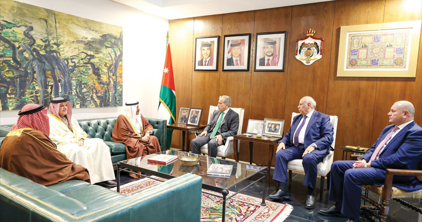 استقبل دولة الدكتور جعفر حسان رئيس مجلس الوزراء وزير الدفاع بالمملكة الأردنية الهاشمية الشقيقة، في دار رئاسة الوزراء بالعاصمة الأردنية (عمَّان) أمس (الأربعاء)، علي بن صالح الصالح رئيس مجلس الشورى، والشيخ أحمد بن محمد آل خليفة نائب رئيس لجنة الشؤون الخارجية والدفاع والأمن الوطني بالمجلس، والشيخ خليفة بن حمد آل خليفة سفير مملكة البحرين لدى المملكة الأردنية الهاشمية، وذلك في إطار الزيارة التي يقوم بها للأردن، تلبية لدعوة من دولة فيصل عاكف الفايز رئيس مجلس الأعيان الأردني.